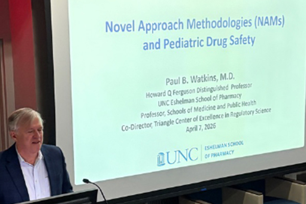 April 7 featured a Special Grand Rounds keynote by Dr. Paul Watkins of the UNC Eshelman School of Pharmacy, who spoke on "Novel Approach Methodologies (NAMs) and Pediatric Drug Safety." The session included a panel discussion with Drs. Watkins, Hornik, and González, focusing on quantitative systems toxicology models and their application in pediatric populations.